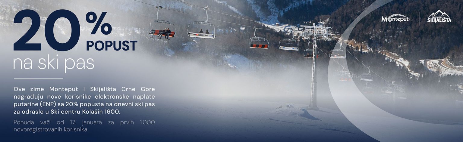 Ove zime, ENP nagrađuje tvoje putovanje! Postanite korisnik elektronske naplate putarine (ENP) i ostvarite 20% popusta na dnevni ski pas u Ski centru Kolašin 1600!